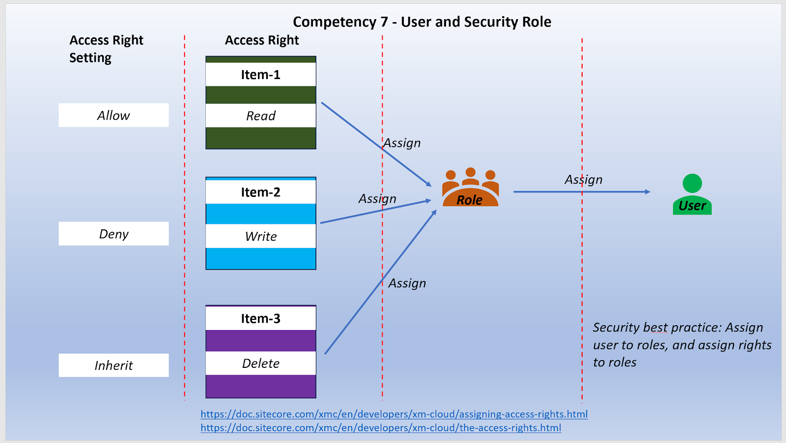 If a user is a member of several roles and one of these roles is specifically denied an access right to an item, the user is denied the access right.